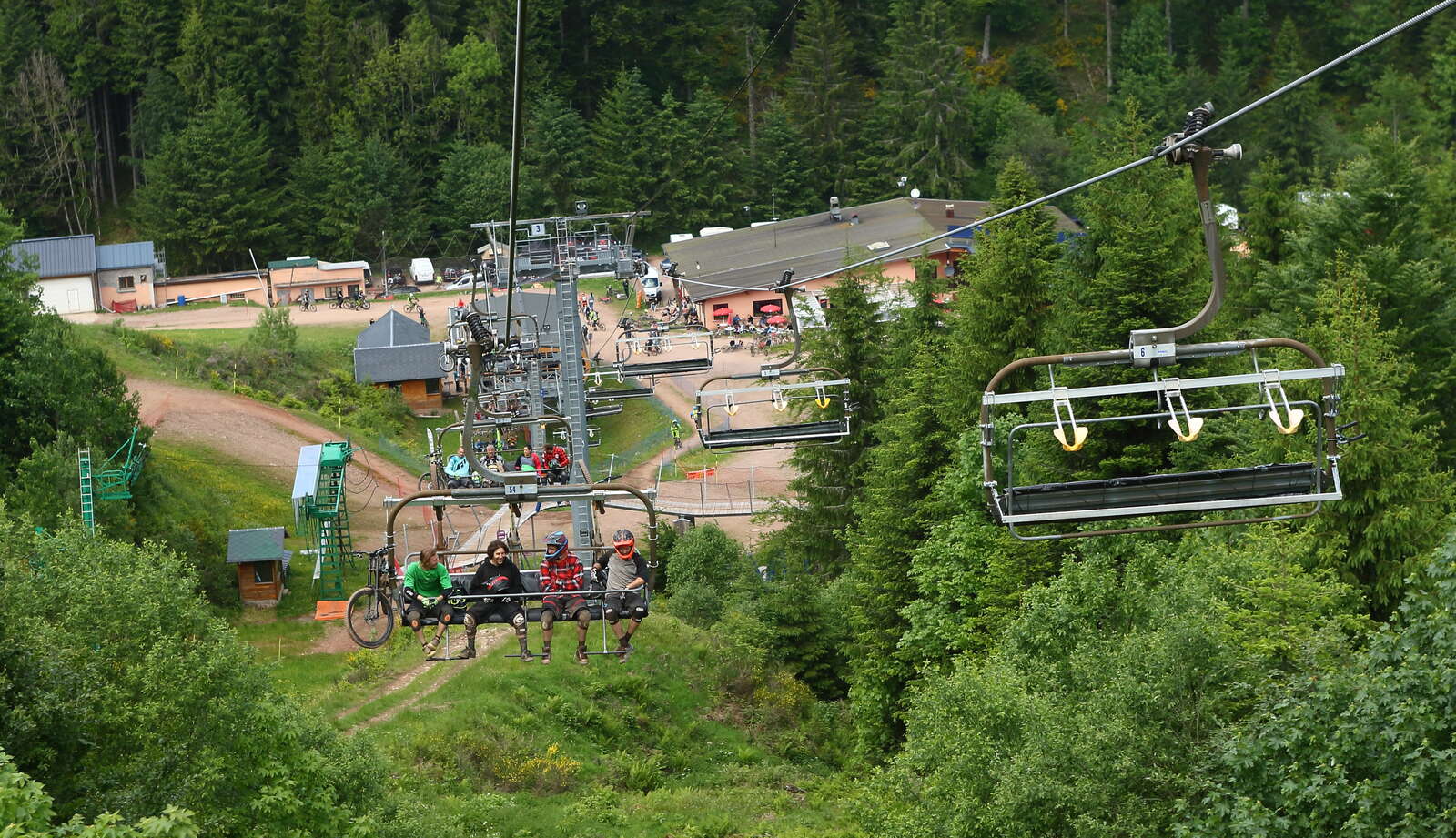 Sur place, vous trouverez également un service de location de matériel à l’Auberge du Vallon (Lac Blanc 900), incluant des VTT DH et des équipements de protection, ainsi qu’un self-service pour reprendre des forces entre deux descentes !
